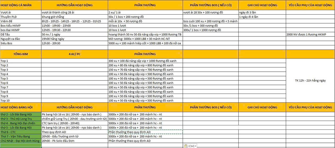 Tổng Hợp Hoạt Động Trong Sever